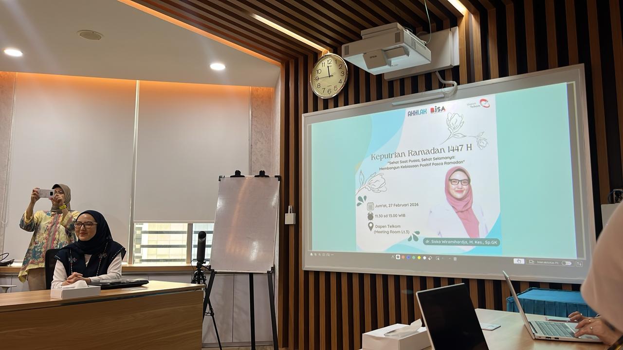 Dalam rangka menyemarakkan Ramadan 1447 H, Dapen Telkom menyelenggarakan kegiatan Keputrian khusus bagi para karyawati sebagai wadah edukasi sekaligus refleksi diri. Mengusung tema “Sehat Saat Puasa, Sehat Selamanya”, kegiatan ini menghadirkan dr. Siska Wiramihardja, M.Kes., Sp.GK, Dokter Spesialis Gizi Klinik dari Departemen Ilmu Kesehatan Masyarakat FK UNPAD. Acara akan dilaksanakan pada Jumat, 27 Februari 2026 pukul 11.30–13.00 WIB di Meeting Room Lt. 3 Dapen Telkom.